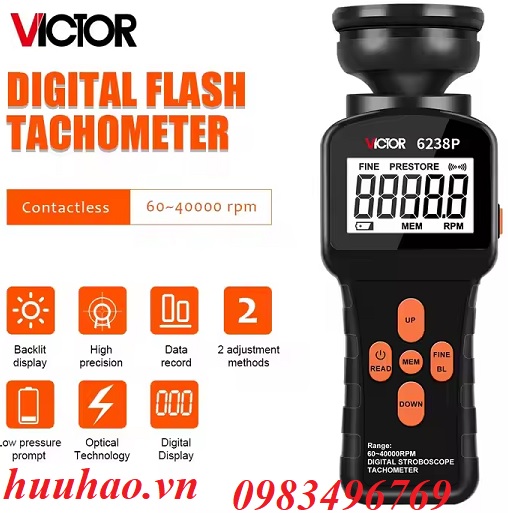 Máy đo tốc độ động cơ dùng tần số chớp, Thiết bị đo tốc độ vòng quay không tiếp xúc Victor 6237P, Victor 6238P