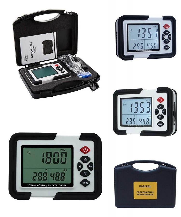- Máy đo và ghi nhiệt độ, độ ẩm HT-2000: Là máy đo đa chức năng, máy đo được khí CO2, nhiệt độ và độ ẩm máy được sử dụng rộng rãi trong nhà máy, nhà kính, phòng sạch, công nghiệp và nông nghiệp, kho bảo quản rượu, bia…, khách sạn, bệnh viện, siêu thị, sân bay, và rạp chiếu phim .v.v .