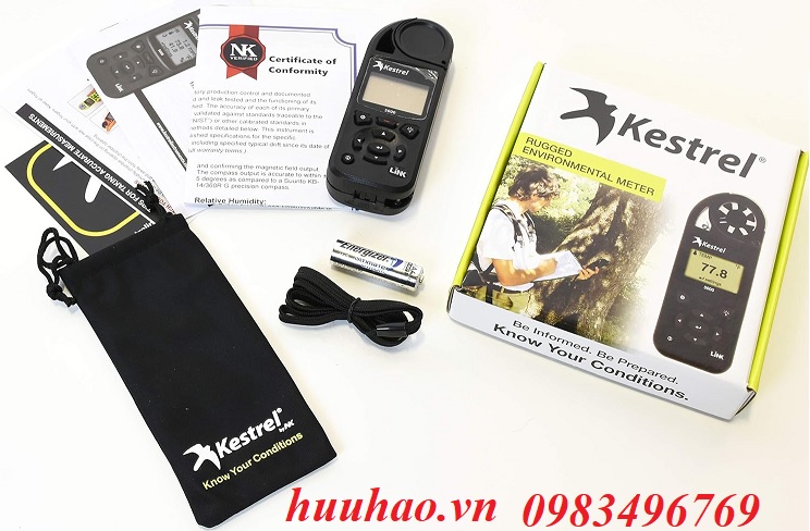 - Máy đo vi khí hậu Kestrel 5000 với 1 pin AAA, nắp bảo vệ và dây đeo