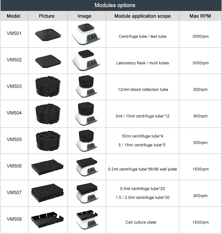- Khả năng lắc: 50ml*4/ 15ml*9/5-10ml*12/2ml*24 ống