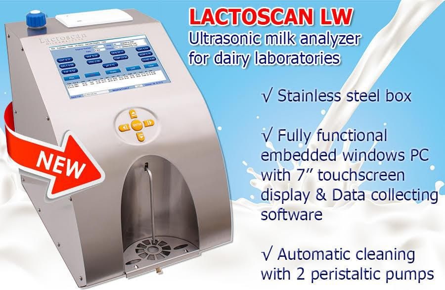 - Máy phân tích sữa Lactoscan LW là loại máy phân tích sữa hiện đại với nhiều tính năng mới : hệ điều hành windows điều khiển bằng màn hình cảm ứng, có thể kết nối với chuột và bán phím không dây, tích hợp máy in nhiệt. Phân tích được nhiều loại sữa: sữa bò, sữa cừu, sữa tiệt trùng với thời gian phân tích nhanh 30 - 60 giây/mẫu.