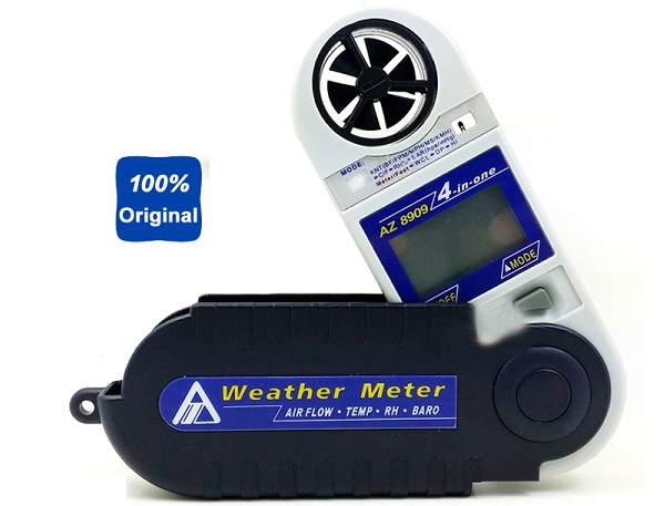 - Máy đo thời tiết đa năng AZ8909 4 trong 1 cầm tay tiện dụng: Đo tốc độ gió, đo nhiệt độ môi trường, đo độ ẩm, đo áp suất khí quyển.
