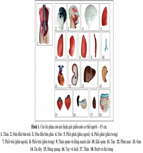 - Hỗ trợ học tập về hệ tuần hoàn ̣gồm tim có thể tháo rời quan sát tâm thất, tâm nhĩ, van tim, động mạch chủ, mạch máu. Hệ hô hấp gồm 2 lá phổi. Hê ̣tiêu hóa gồm thực quản, gan, da ̣dày, ruôt non, ruột già, tụy và lách. Hê ̣ bài tiết gồm 2 quả thận , bàng quang, cơ quan sinh dục nam và nữ có thể tháo rời và thay thế.