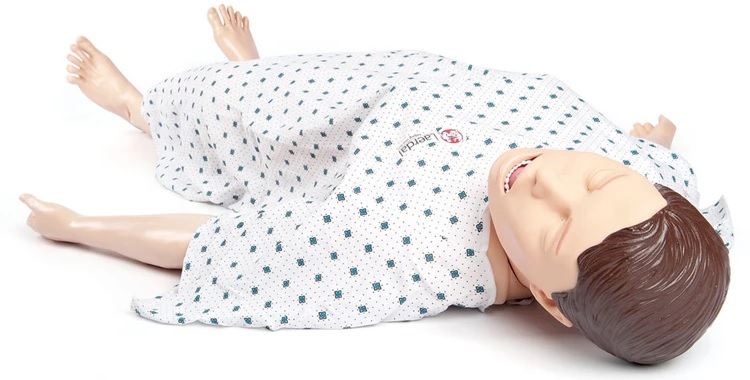 - Mô hình với phần đầu có các mốc giải phẫu chính xác, khí quản, thực quản, phổi và dạ dày mô phỏng, cho phép thực hành các thủ tục chăm sóc bệnh nhân