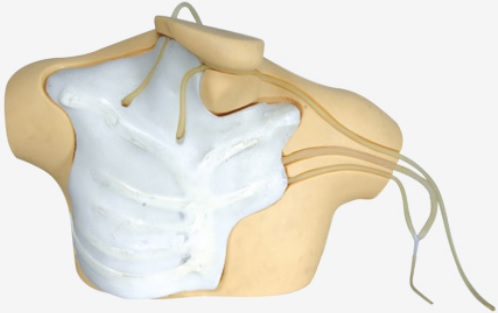 - Các tĩnh mạch cổ chứa đầy máu mô phỏng màu đỏ để sử dụng cho việc chọc thủng tĩnh mạch cảnh trong và tĩnh mạch dưới đòn. Bóng bóp có thể mô phỏng xung động mạch cảnh. Với giải phẫu chính xác, việc sờ nắn hoàn toàn giống như trên bệnh nhân. Việc thay thế ống bên trong và da cực kỳ dễ dàng.
