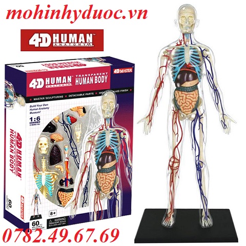 - Mô hình giải phẫu cơ thể người 4D nhỏ gọn, tổng quan cấu tạo đầy đủ các bộ phận giải phẫu đường đi của khung xương và hệ thống nội tạng, đi kèm là hệ thống động tĩnh mạch chi tiết.