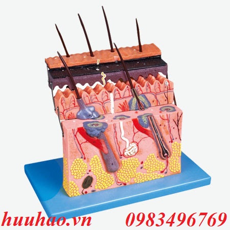 - Mô Hình Cấu Tạo Da Người GD/A41001 biểu hiện các lớp da, lớp lông đầu tiên, tuyến mồ hôi, các cơ quan cảm giác của da.
