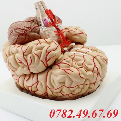 - Và ngoài ra, mô hình còn thể hiện các mạch máu não, cũng như động mạch thân nền của não.