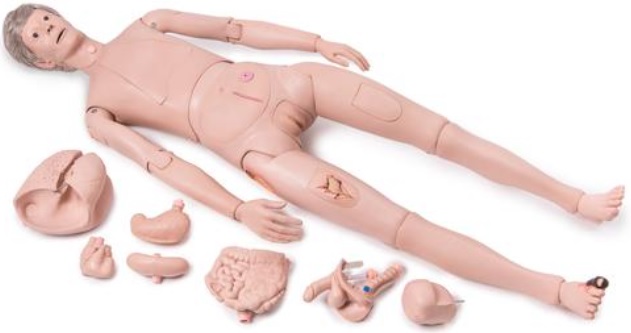 - Mô hình bao gồm các bộ phận có thể tháo rời để tăng đặc tính đào tạo chăm sóc bệnh nhân như thông tiểu,thụt tháo, chăm sóc ostomy, rửa, cho ăn mũi dạ dày.
