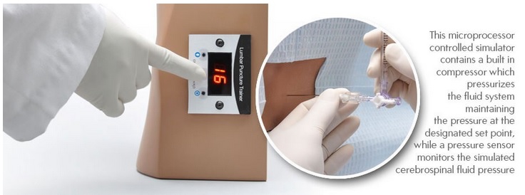 - Dễ dàng bơm dịch não tủy mô phỏng và đặt mức áp suất dung dịch, từ đó cho phép sinh viên lấy dịch não tủy mô phỏng và đo áp suất.