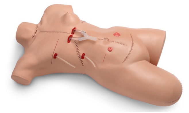 - Mô hình bệnh nhân nữ giới với 14 vết thương mổ bao gồm: