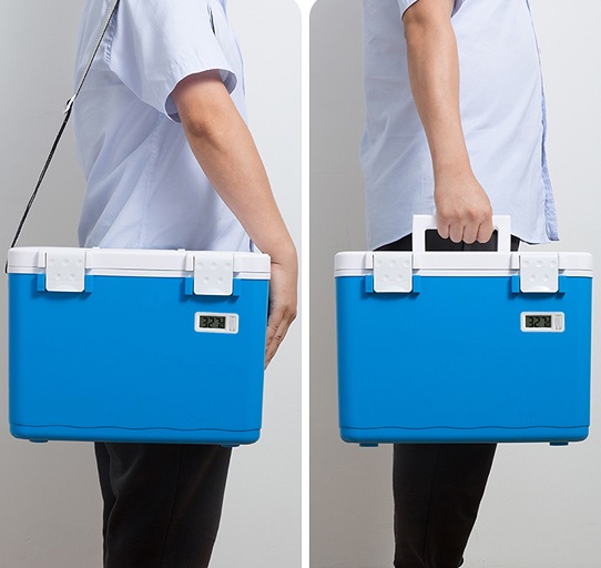 Màn hình LCD: Thùng được trang bị màn hình LCD để theo dõi nhiệt độ trong hộp, an toàn cho việc bảo quản vacxin, máu, mẫu