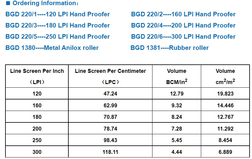 THÔNG SỐ KỸ THUẬT TAY KÉO MỰC IN – HAND PROOFER BGD 220