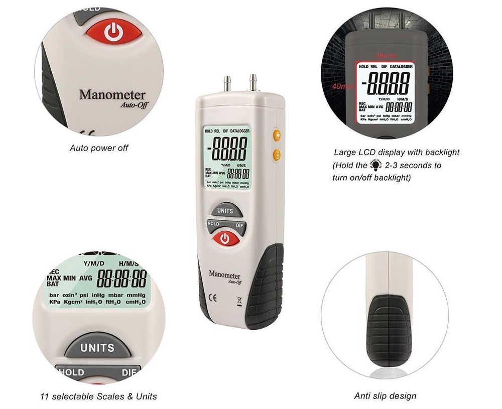 - Máy đo áp suất áp lực tối đa 20psi HT-1891 là một thiết bị kỹ thuật số có thể so sánh và đo chênh lệch áp suất từ -55H2O đến +55H2O (2 psi). Máy cho phép lựa chọn tới 11 đơn vị đo áp suất khác nhau phù hợp với từng yêu cầu đo: H2O, pis, bar, mbar, Kpa, inHg, mmHg, ozin2, ftH2O, kgcm ...