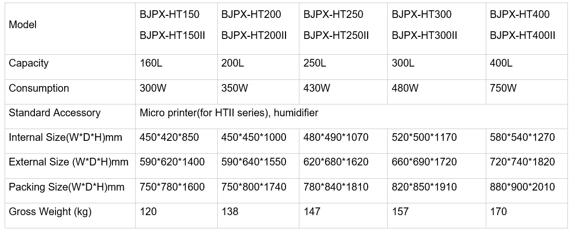 Thông số kỹ thuật tủ môi trường nhiệt độ độ ẩm BJPX-HT: